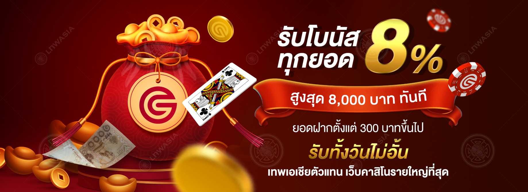 ฝากเงินรับโบนัส 8% สูงสุด 8,000 บาท รับได้ทั้งวันไม่อั้นปลุกเร้าความมันส์ ฝากมาก ได้มาก! โปรโมชั่นนี้สำหรับลูกค้าเทพเอเชียที่เป็นสมาชิกของ GClub (Royal Online) รับโบนัสทั้งวันไม่อั้น* พิเศษเฉพาะ GClub เท่านั้น สมัครเลยและรับรางวัลเหล่านี้! ระยะเวลา วันนี้ – 30 มิถุนายน 2567 วิธีขอรับโปรโมชั่น: สมาชิกมีสิทธิ์รับโบนัสพิเศษนี้ได้ทุกยอดฝาก รับโบนัสทั้งวันไม่อั้น* พิเศษเฉพาะ GClub เท่านั้น สมาชิกมีสิทธิ์รับโบนัสเต ิมเงินได้ ดังนี้ ยอดฝากขั้นต่ำ % โบนัส ยอดเทิร์นโอเวอร์ 300 5% 5 เท่า 1,000 8% 5 เท่า 10,000 8% 5 เท่า 100,000 8% 5 เท่า สมาชิกจะต้องทำการกรอกแบบฟอร์มโดยใช้ยูสเซอร์เนมเพื่อขอรับโปรโมชั่น https://cabinet.club-play.net/promo วิธีคำนวณยอดเทิร์นโอเวอร์ (ยอดเงินฝาก + โบนัส) x จำนวนเท่า = […]