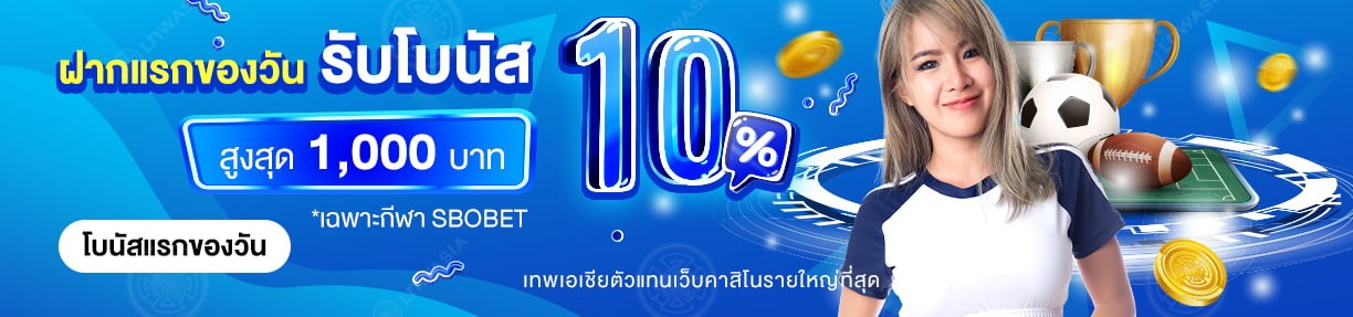 SBOBET โปรโมชั่นยอดฝากแรก รับเพิ่มทันที 10% สูงสุด 1,000 บาท
